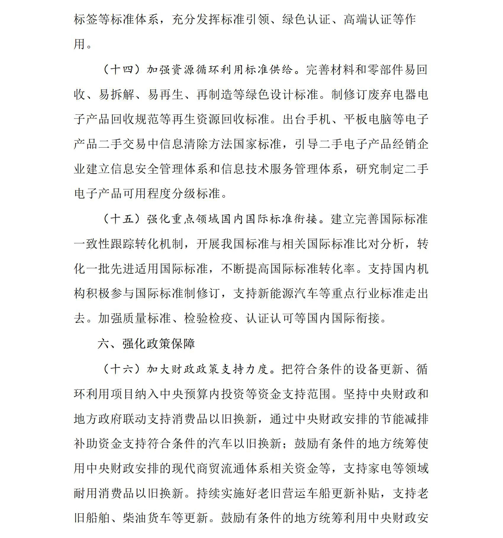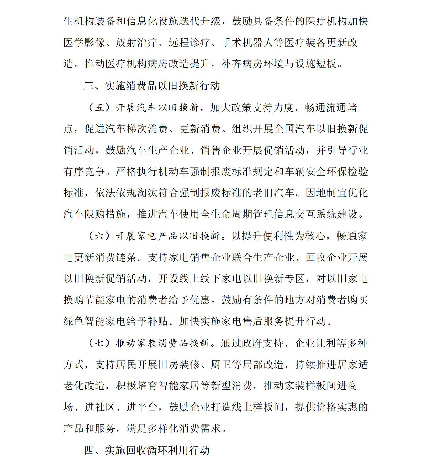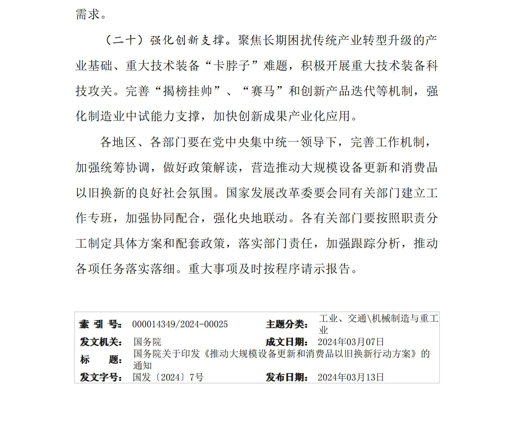 3月13日晚間,國務院正式印發《推動大規模設備更新和消費品以舊換新行動方案》。