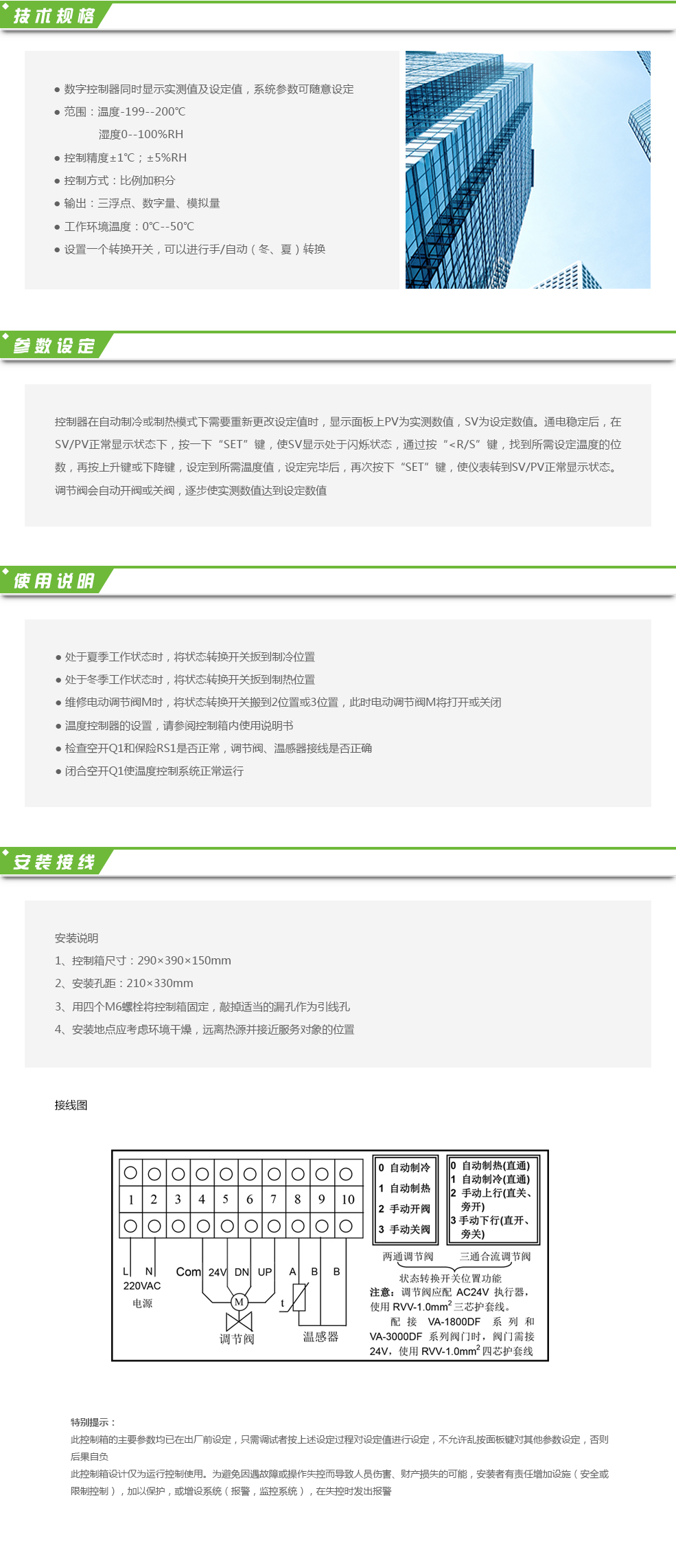 HL-KZ1201系列溫度控制箱內(nèi)配裝CH402系列鋰化表控制器,用于水管道或風(fēng)系統(tǒng)的控制。通過(guò)對(duì)檢測(cè)參數(shù)與箱內(nèi)控制器上用戶設(shè)定的參數(shù)相比較、判斷,來(lái)控制電動(dòng)調(diào)節(jié)閥,達(dá)到水溫式室溫的自動(dòng)調(diào)節(jié)。