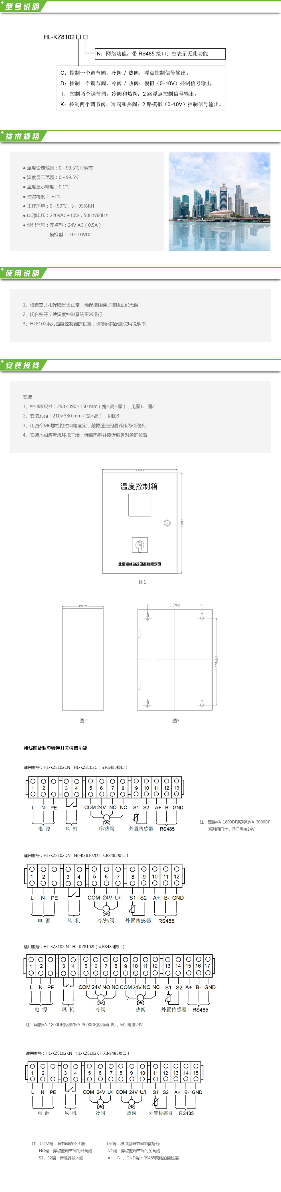 HL-KZ8102系列溫度控制箱配裝HL8102系列溫度控制器,主要應(yīng)用于水系統(tǒng)或風(fēng)系統(tǒng)的溫度控制。通過對(duì)檢測參數(shù)與溫度控制器上用戶設(shè)定的參數(shù)相比較、判斷,控制電動(dòng)調(diào)節(jié)閥的開度,根據(jù)溫差控制風(fēng)機(jī)的工作狀態(tài)(起動(dòng)與停止),從而達(dá)到恒定水溫或室溫的目的。